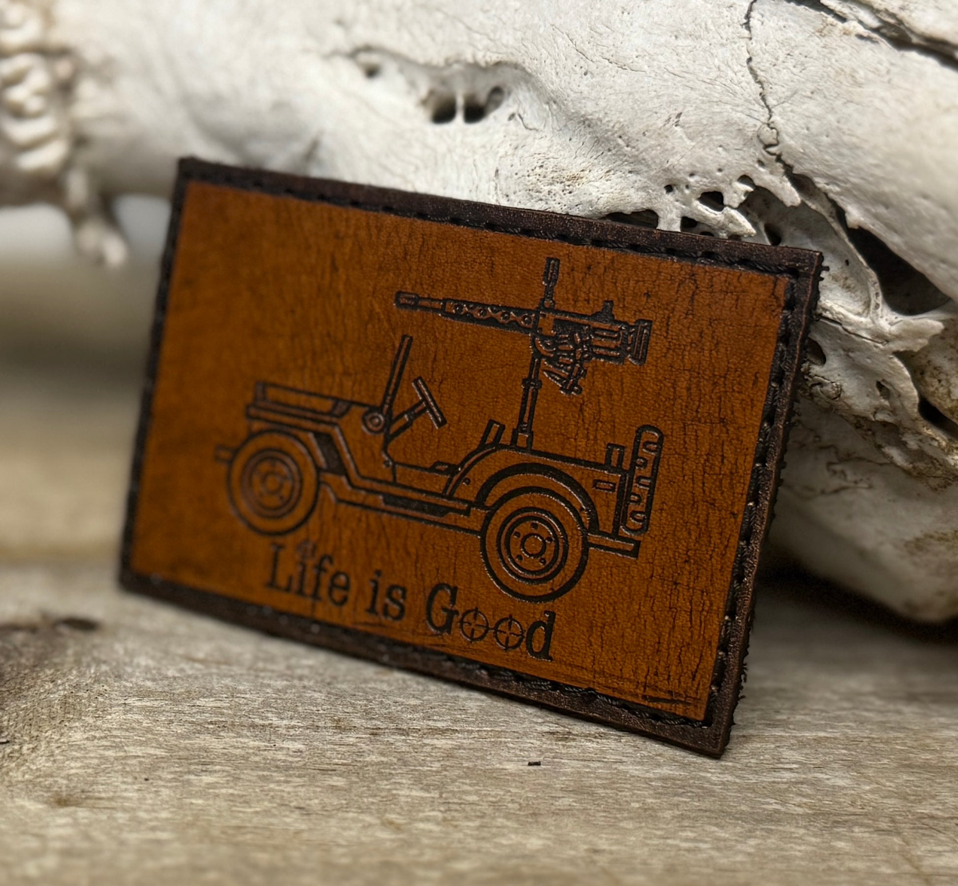 This “Life Is Good” leather morale patch features original artwork by tattoo artist Joey Nobody, known for his work within the military and special operations community. Laser engraved into premium full-grain leather, this design blends humor, grit, and unapologetic attitude.